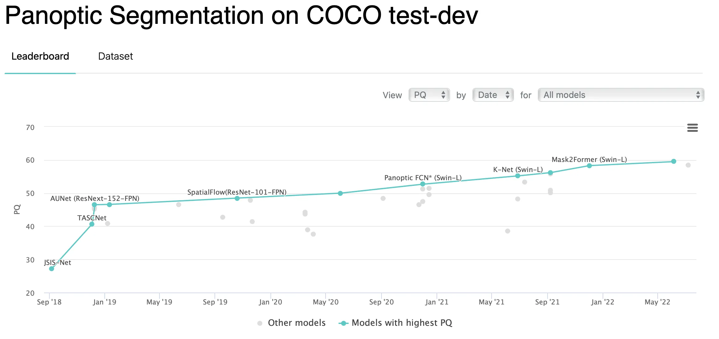 So if a dataset has annotations for Semantic and Instance cases for the same pictures, you can consider it a Panoptic Segmentation dataset and use it for your needs. The trustworthy benchmark datasets regularly used to evaluate recent Panoptic Segmentation model architectures and approaches are as follows: