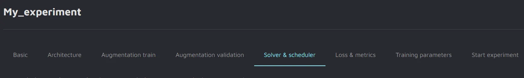 3. Create a new experiment and choose the desired architecture and other parameters.