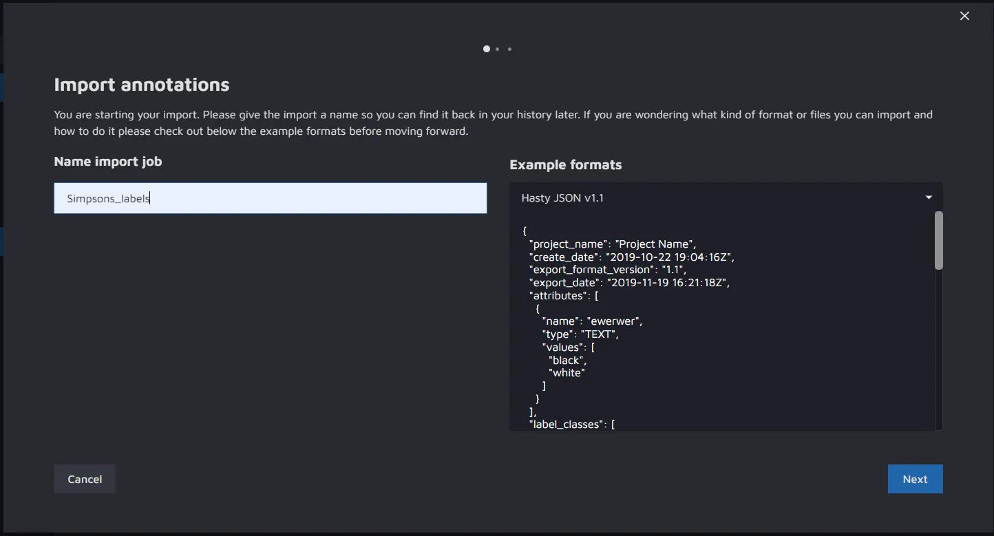 Then create a new import and upload the expanded file in the Hasty JSON v1.1 format.