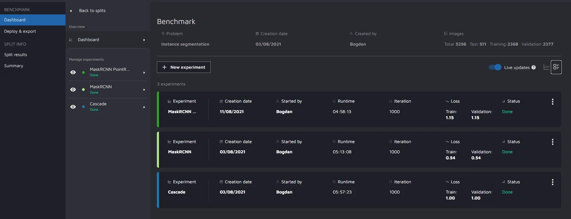 - Experiments - Total number of experiments a user has carried out for a model type.