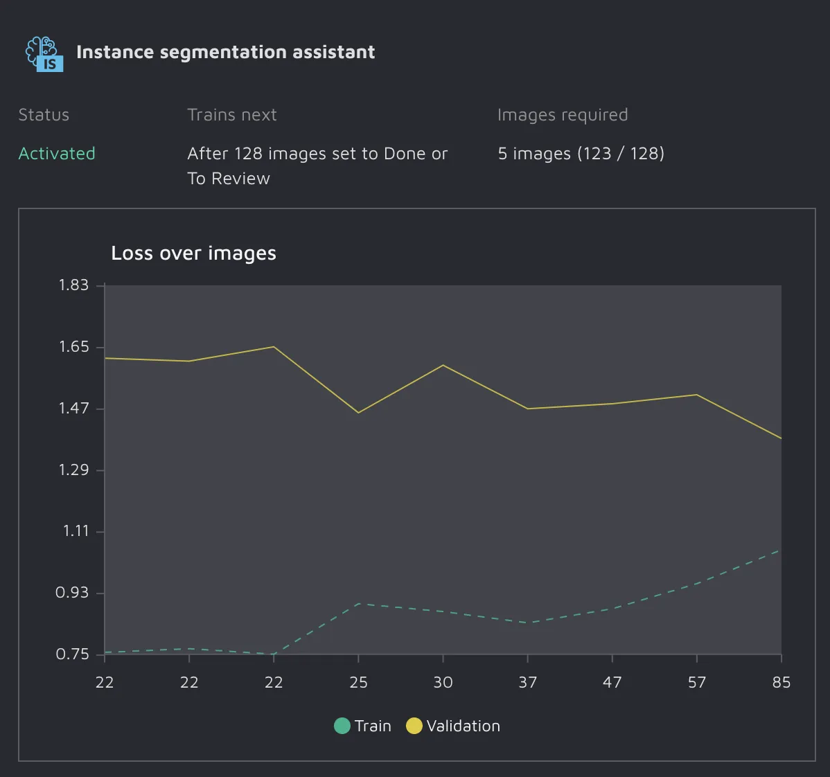 - Next, you see the Trains next section. This tells you how many new annotations or images you need to annotate to train a new model (differs depending on model)