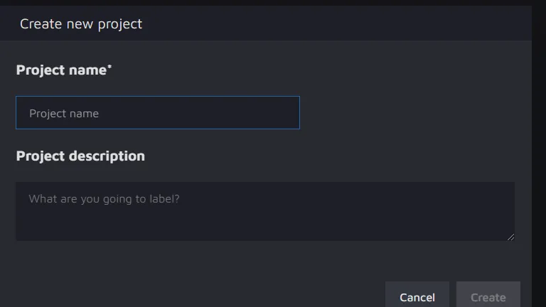 Give the project a name and a description and then click "Create" to create a new project.