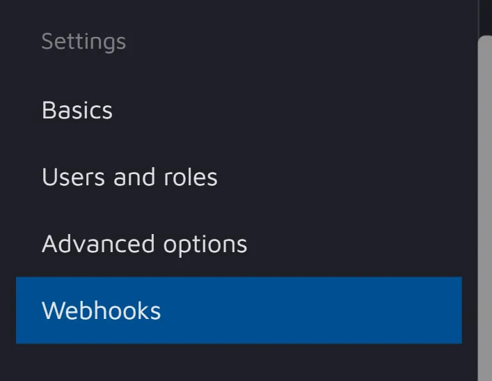 1. Firstly, go to Webhooks in the project dashboard.